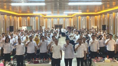 LiputanKalteng.com, Puruk Cahu – Pemerintah Kabupaten Murung Raya secara resmi memberikan ucapan selamat kepada Danyonif 883/TA, Letkol Inf Supriyanto, atas kenaikan pangkatnya. Ucapan ini disampaikan langsung oleh Bupati Murung Raya, Heriyus, saat menghadiri acara syukuran di Marshalling Area Yonif, Rabu (8/4/2026).